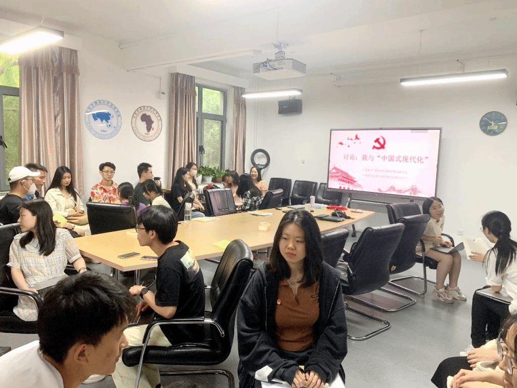 为深入学习贯彻党的二十大精神,2023年5月29日,beat365唯一官方网站、非洲学院本科生党支部组织开展“深入理解中国式现代化”主题学习活动,本科生党支部书记罗云燕、32名本科生党员、预备党员参与活动。本次学习会由宣传委员何天怿主持。