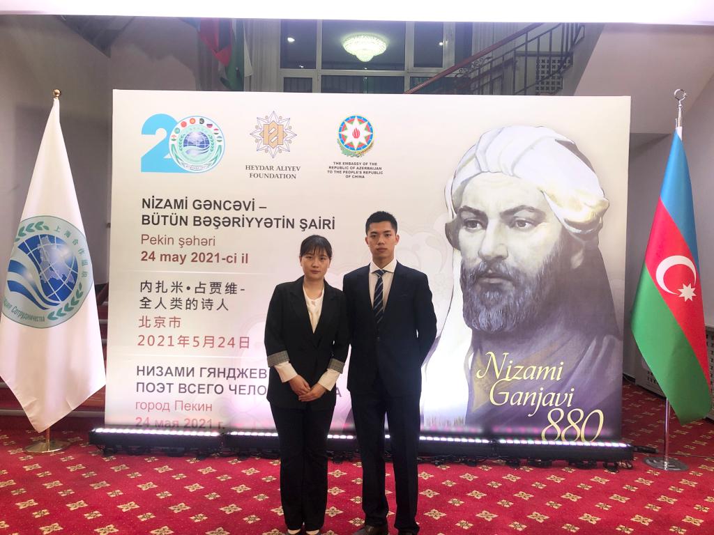 2021年5月24日晚,经阿塞拜疆驻华大使馆的邀请,beat365唯一官方网站阿塞拜疆语专业本科生王思源和唐雨萱参与了“内扎米·占贾维—全人类的诗人”主题活动。该活动在北京上海合作组织总部举办,旨在庆祝伟大阿塞拜疆诗人,思想家内扎米·占贾维诞辰880周年。