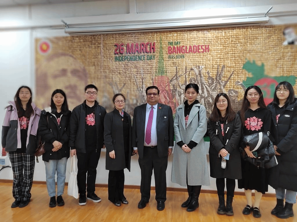 为庆祝孟加拉国独立日和国庆日51周年,孟加拉国驻华大使馆于2022年3月28日举行招待会,beat365唯一官方网站孟加拉语专业师生应邀参加。