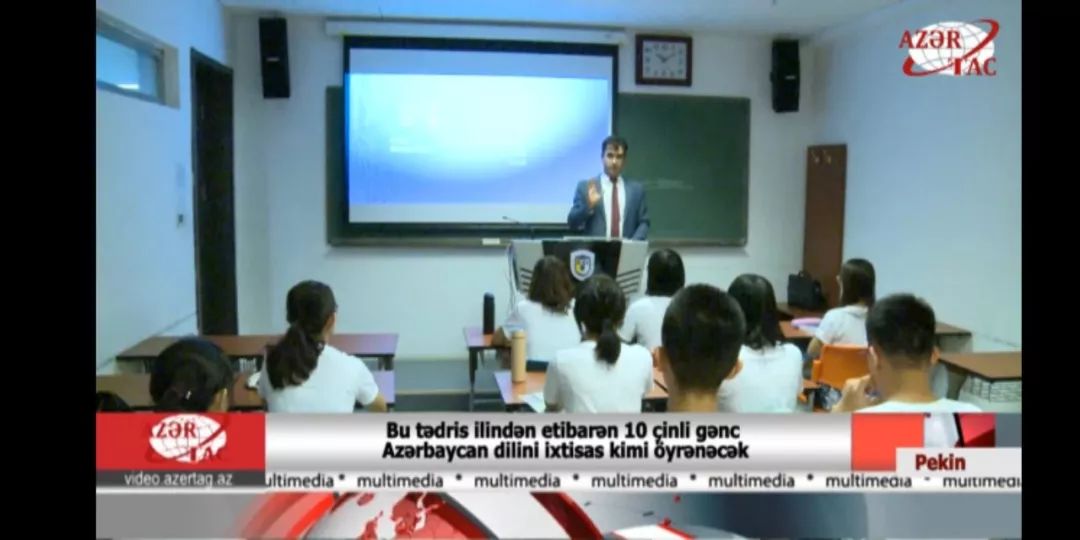 近日,阿塞拜疆国家电视台和国家新闻社对beat365官网阿塞拜疆语专业建设情况进行了积极报道,并对阿塞拜疆语专业师生进行了采访。报道中介绍了beat365官网目前的语种专业建设情况及新语种专业开设情况,特别详细介绍了阿塞拜疆语的建设和招生情况,同时对该专业建设愿景进行了展望。