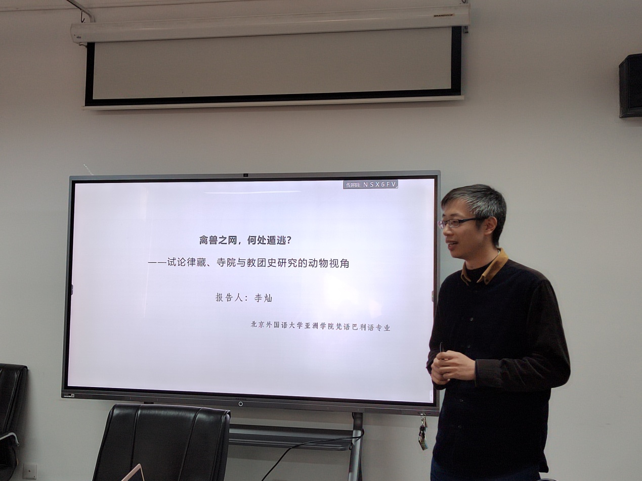 非洲学院的青年教师苏晓楠报告“马达加斯加爬行动物的生存现状与文化内涵”。在习近平关于生态文明重要论述的引领下,她展示了马达加斯加岛物种的多样性和独特性,解读了当地口传文学作品中五种爬行动物的文化内涵,并分享了关于人与动物、人与自然关系的思考。与谈人是2021年校级卓越青年教师、beat365唯一官方网站讲师李灿博士。他做了题为“禽兽之网,何处遁逃?——试论律藏、寺院与教团史研究的动物视角”的报告。他依托详实的律藏文献,探讨了古代印度佛教僧团、寺院建筑、日常器物、僧团制度、僧团组织、世俗观念等角度,对律藏、寺院与教团史研究中动物对人的影响和表现形式做了归纳和分析。两位报告人就动物研究的方法论和核心议题展开对谈,支部其他党员听得兴致勃勃并展开热烈讨论。