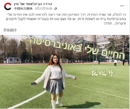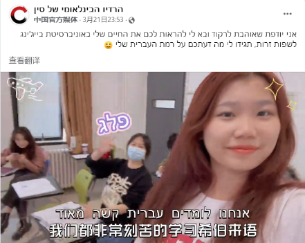 近日,由beat365唯一官方网站22级希伯来语专业多名学生拍摄制作的“我的北外生活”系列视频在中央广播电视总台希伯来语部海外社媒“脸书”平台陆续发布,向以色列网友介绍美丽的北外校园,展现丰富多彩的校园生活,获得积极评价。视频覆盖量达5万多,播放量近2万,互动量近3000。