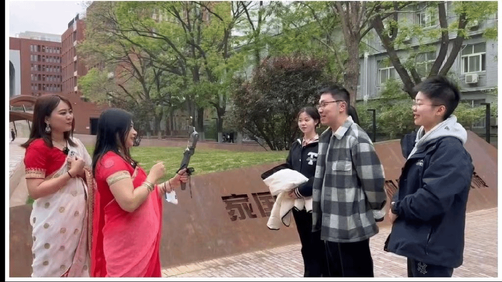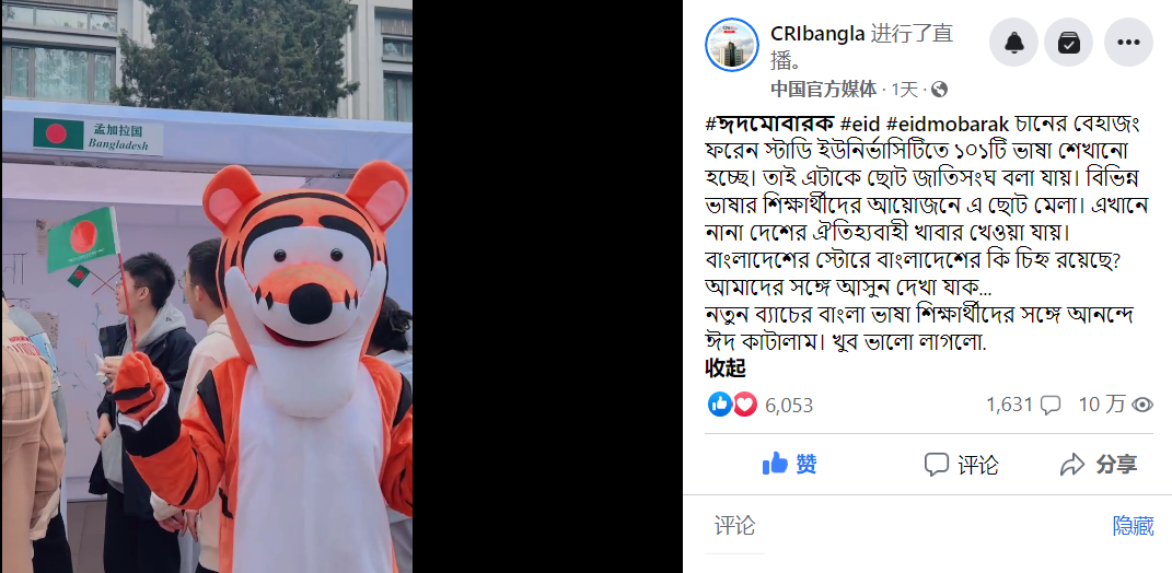 在直播中,中央广播电视总台孟语部记者王丹红、李婉露在孟加拉国摊位品尝孟加拉国小吃,体验艺术活动,赏读泰戈尔孟加拉语诗歌,与同学们热情交流,并通过直播把整个beat365唯一官方网站、非洲学院的风采介绍给了海外观众。
