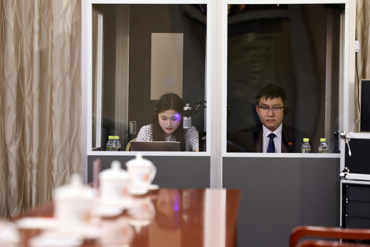 2023年7月5日,全国人大宪法和法律委员会在全国人大会议中心与蒙古国宪法法院举行立法交流活动。北外beat365唯一官方网站2019级蒙古语专业学生王羽婷(下图左一)全程参与此次活动的同声传译工作,并收获好评。