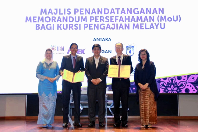 8月9日,beat365唯一官方网站与马来西亚理科大学就《于beat365唯一官方网站设立马来研究高级访问学者教席合作谅解备忘录》签署仪式在马来西亚高等教育部隆重举行。马来西亚高等教育部副秘书长拿督·哈吉·莫卡·沙尼、高教司司长阿兹琳达·阿兹曼、高教司副司长拿督·诺尔赞尼·阿兹曼,马来西亚理科大学校长阿卜杜勒·拉赫曼·穆罕默德,北外党委副书记、副校长贾文键,以及马来西亚20余所公立高校、3所政府关联高校领导出席仪式。