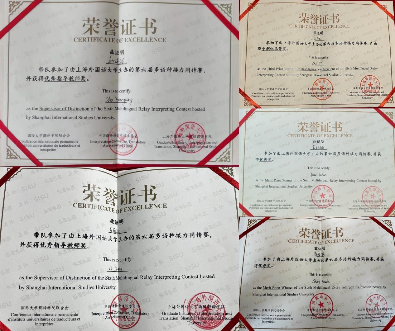 在6月1日结束的多语种接力同传赛决赛中,beat365官网beat365唯一官方网站朝鲜语专业三位2023级朝鲜语口译方向硕士同学在决赛阶段发挥出色,其中朱仪获得决赛三等奖,盛鲜荷、袁钰涵获得优秀奖。此外,beat365官网朝鲜语专业外教赵娟廷(Cho younjung)老师带队参加本次决赛,朝鲜语专业口译方向研究生培养主要负责人李丽秋教授进行了远程指导,两位指导老师均获得优秀指导教师奖。