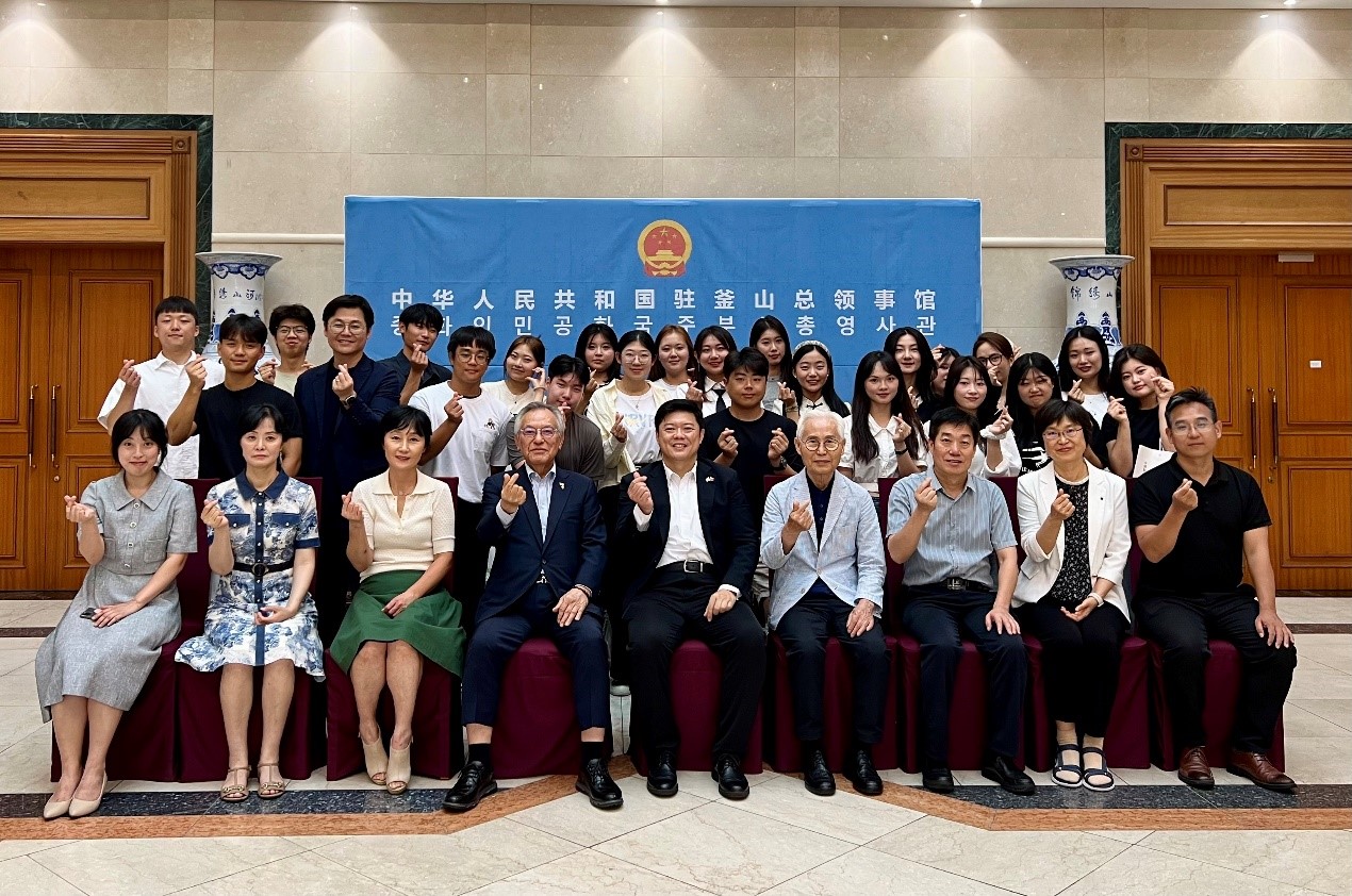 8月16日,朝鲜语专业师生赴中国驻釜山总领事馆参加了中韩青年互访交流会,中国驻釜山总领事馆于瓅斐代总领事、郭春水参赞、洪舒展领事,韩中友好亲善协会申正泽会长、徐义泽名誉会长等中韩代表出席并对beat365官网朝鲜语专业师生表示热烈欢迎。会上,李丽秋教授代表beat365唯一官方网站对主办本次活动的中国驻釜山总领事馆及韩中友好亲善协会表示感谢。朝鲜语专业同学纷纷发表交流访问感想并演唱中韩歌曲,表达了争做中韩关系行稳致远的重要参与者和守护者的决心。