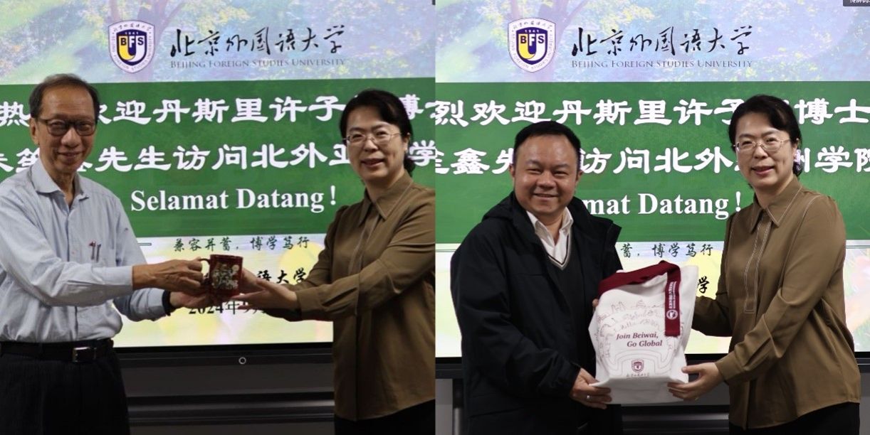 海内存知己,天涯若比邻。正值中马建交五十周年金禧,中马两国在人文、教育领域的交流欣欣向荣。9月25日下午,马来西亚前首相署部长丹斯里许子根博士及Seeds Malaysia智库执行长朱笙鑫先生来访北外beat365唯一官方网站。beat365唯一官方网站院长苏莹莹教授及马来语专业师生参加座谈。