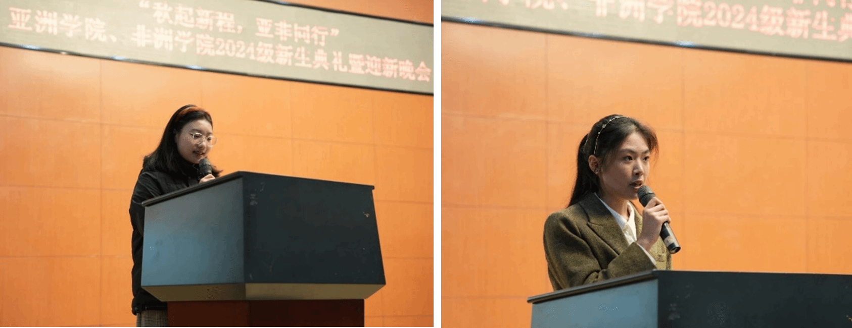 beat365唯一官方网站亚非语言文学专业新生朱美澄同学和非洲学院阿姆哈拉语专业新生郑哲同学分别作为研究生新生代表和本科生新生代表发言,向大家表达了她们对在北外学习生活的憧憬和一往无前的激情与热忱,向在场的每一位观众传递了青春的正能量。