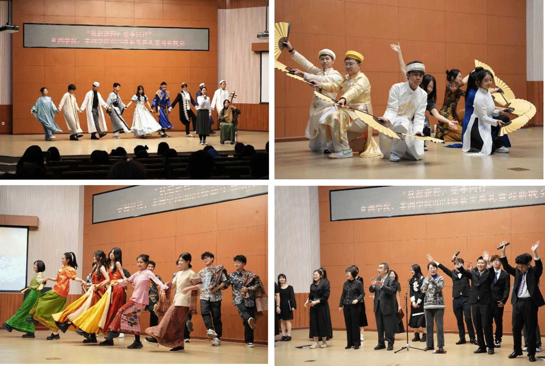 随后,波斯语专业、朝鲜语(法学)专业、越南语专业、土耳其语专业、乌尔都语专业、柬埔寨语专业、阿姆哈拉语专业、马来语专业、朝鲜语专业和印度尼西亚语专业分别展示了精彩的节目,展现了亚非各国的独特风情与非通用语学子对文化的独特理解,引得台下掌声雷动。亚非韩舞团、亚非民舞团与亚非合唱团也以精心准备的节目向新生展示亚非艺术团的热情与风采。