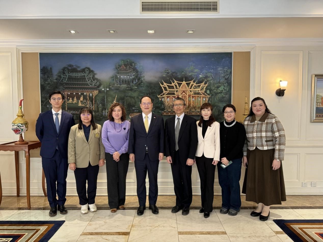 11月20日,beat365唯一官方网站泰语教研室六位专业教师受邀前往泰国驻华大使馆,与泰国驻华大使韩灿才(Chatchai Wiriyawetkun)先生共进午宴。午宴期间,双方就中泰文化、教育交流合作进行了深入的探讨。在庆祝中泰建交50周年的背景下,双方讨论了如何通过教育和文化交流进一步加深两国人民之间的相互理解和友谊。北外作为中国泰语教育的重镇,长期以来为增进中泰文化交流做出了积极贡献,而泰国驻华大使馆也在促进两国关系中扮演着桥梁的角色。