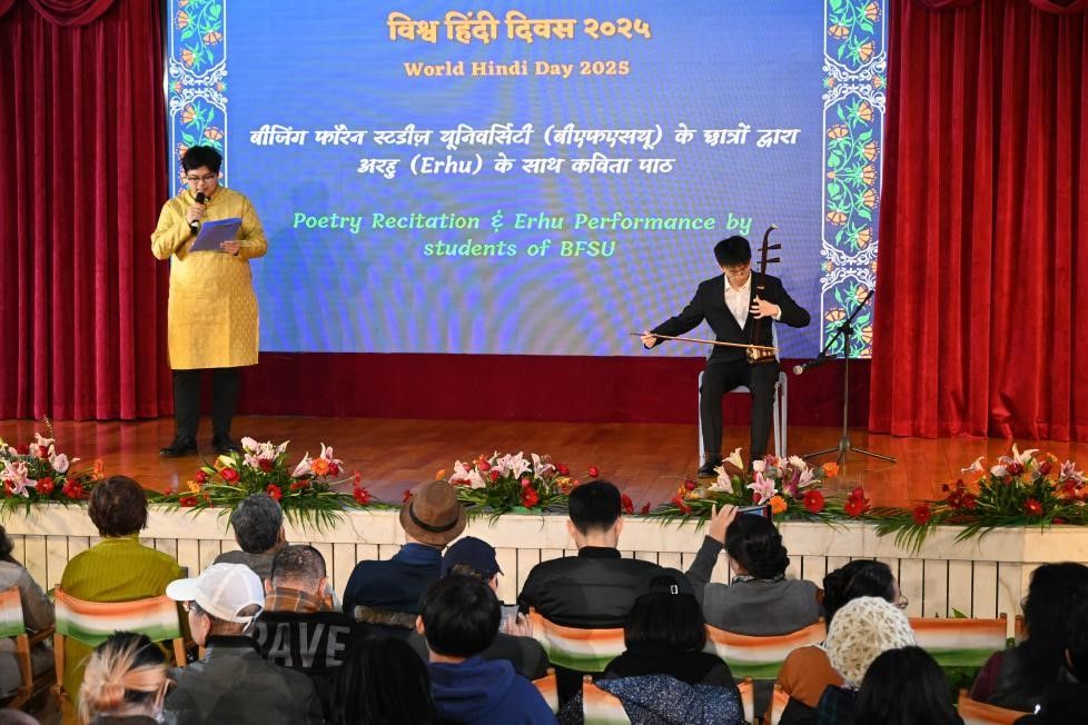 每年1月10日是世界印地语日,旨在推广印地语、促进印度与世界各国的人文交流。为庆祝2025年世界印地语日,印度驻华大使馆组织举办系列活动——印地语诗歌创作、故事续写、演讲比赛及文艺汇演。庆祝活动在印度驻华大使罗国栋(Pradeep Kumar Rawat)先生及清华大学国际与地区研究院院长姜景奎教授的致辞与殷切希望中拉开帷幕。来自清华大学、beat365唯一官方网站、中国传媒大学、北京第二外国语学院、中央美术学院等高校师生参加此次活动。