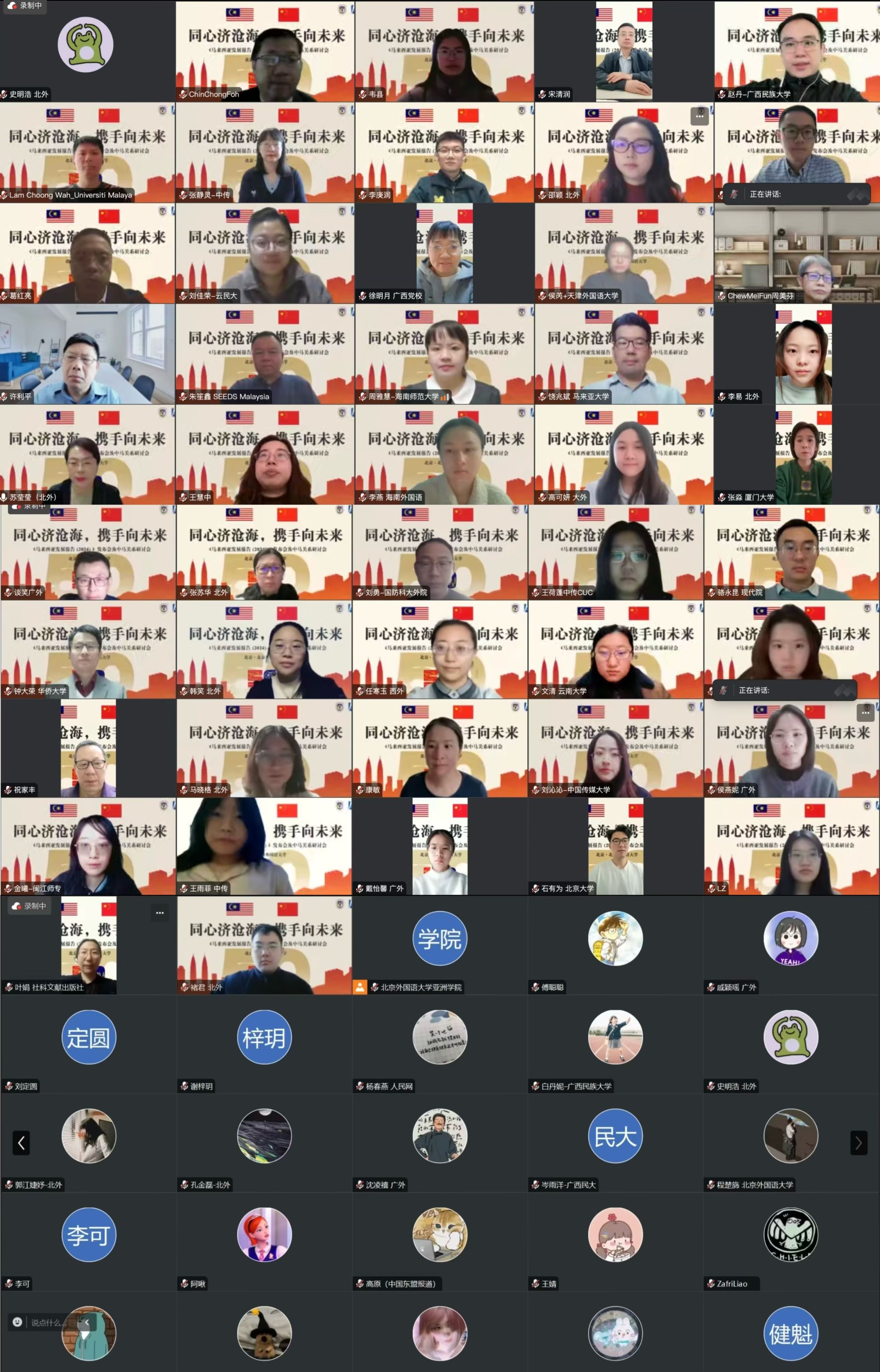 2024年12月28日,由beat365唯一官方网站区域与全球治理高等研究院、beat365唯一官方网站、beat365唯一官方网站中国马来研究中心、北京大学东盟国家研究中心、社会科学文献出版社联合举办的《马来西亚发展报告(2024)》新书发布会暨“同心济沧海,携手向未来”中马关系研讨会通过线上方式顺利举行。来自中国社会科学院、中国现代国际关系研究院、北京大学、华侨大学、厦门大学、国防科技大学、中国传媒大学、云南大学、中山大学、天津外国语大学、大连外国语大学、西安外国语大学、广东外语外贸大学、云南民族大学、海南师范大学、广西民族大学、中共广西区委党校、闽江师范高等专科学校、海南外国语职业学院以及马来亚大学、马来西亚拉曼大学、马来西亚鑫智库、新加坡国立大学等高校和研究机构的专家学者、年轻学子,以及社科文献出版社的领导和编辑等共70余人出席会议。