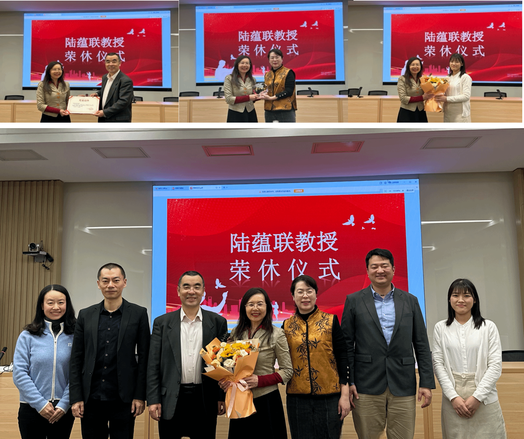 会议还隆重举行了陆蕴联老师的荣休仪式。来自老挝语教研室的李小元老师主持仪式,苏莹莹院长深情回顾了陆老师在教学科研、人才培养等方面作出的卓越贡献,许晔书记和苏莹莹院长代表学院向陆老师颁发了荣休证书和荣休铭牌。与会教师纷纷表达对陆老师的崇高敬意和真挚祝福。