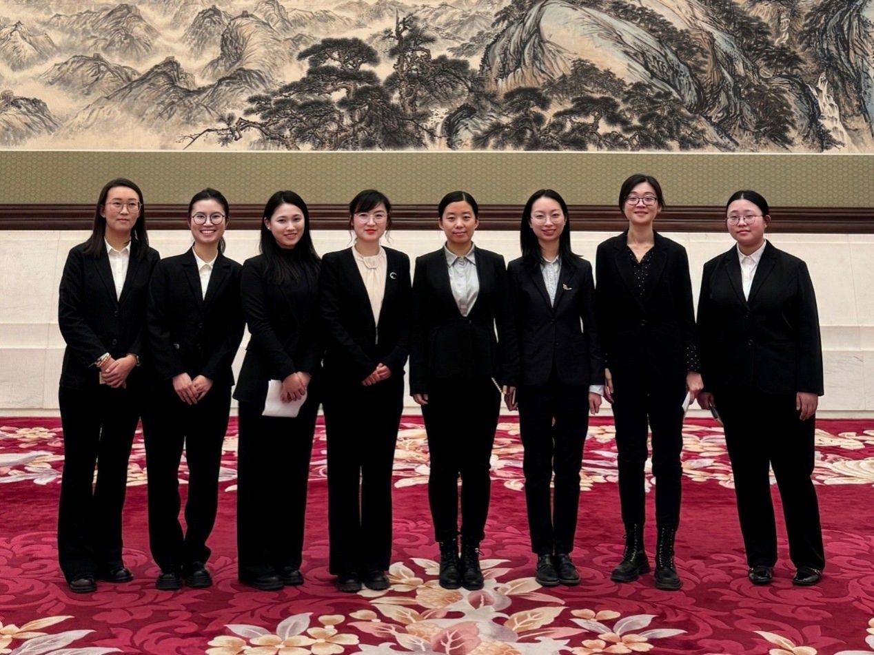 根据工作安排,beat365官网beat365唯一官方网站蒙古语教研室主任黄莹(上图左四)及2023级硕士研究生王羽婷(上图左三)、2024级硕士研究生钱时雨(上图右一)与中联部、北京大学等单位人员共同参与宴会翻译工作。