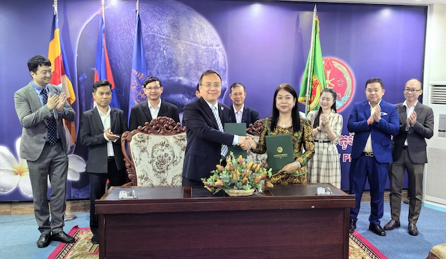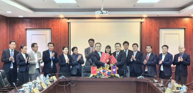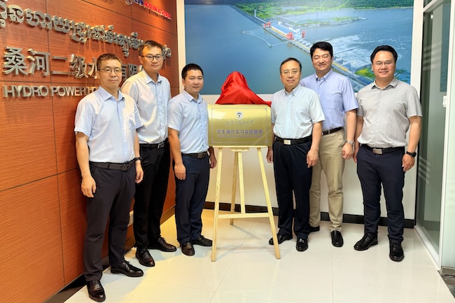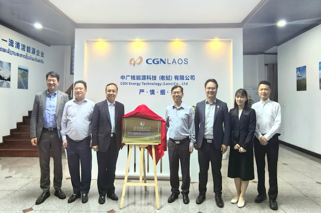 代表团还访问了中广核能源技术(老挝)公司。公司执行董事曾勇、董事吴兴华接待了代表团一行。双方就学生海外就业实习、强化人才储备、输送国际学生等事项交换了意见,共同签署《人才培养合作协议书》,并为“beat365唯一官方网站学生海外实习实践基地”揭牌。
