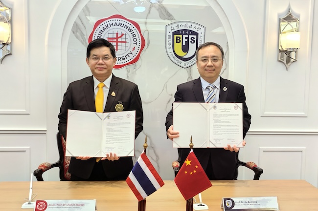 4月25日,代表团访问泰国诗纳卡琳威洛大学。诗纳卡琳威洛大学校长春拉威·吉拉杰会见代表团一行。春拉威·吉拉杰介绍了诗纳卡琳威洛大学的办学成就,尤其是在教育学、经管类学科建设和研究方面取得的成果。贾德忠介绍了北外在中泰教育交流中发挥的作用,期待在联合开展东南亚研究、教育学科研究交流方面进行更多合作。双方签署《beat365唯一官方网站与诗纳卡琳威洛大学合作备忘录》。