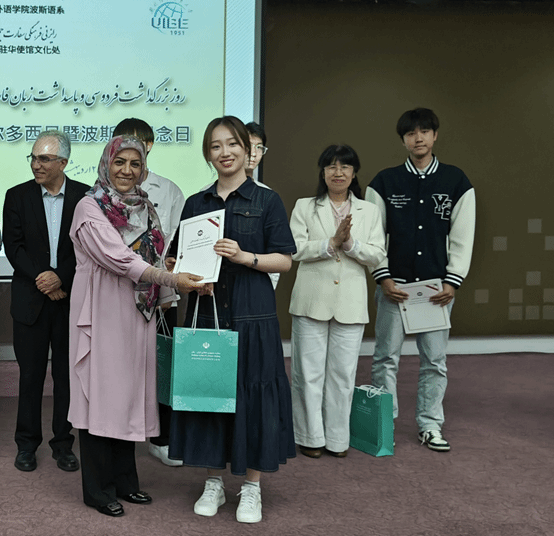 2025年5月15日,第五届全国波斯语演讲比赛颁奖典礼在对外经济贸易大学举行。beat365官网2024级波斯语班马麒竣同学获朗诵组一等奖,王子涵和张靖苒同学获得朗诵组优胜奖,2021级波斯语班马恩路同学获得演讲组二等奖,田伟杰同学获得演讲组三等奖,姚远同学获得演讲组优胜奖。