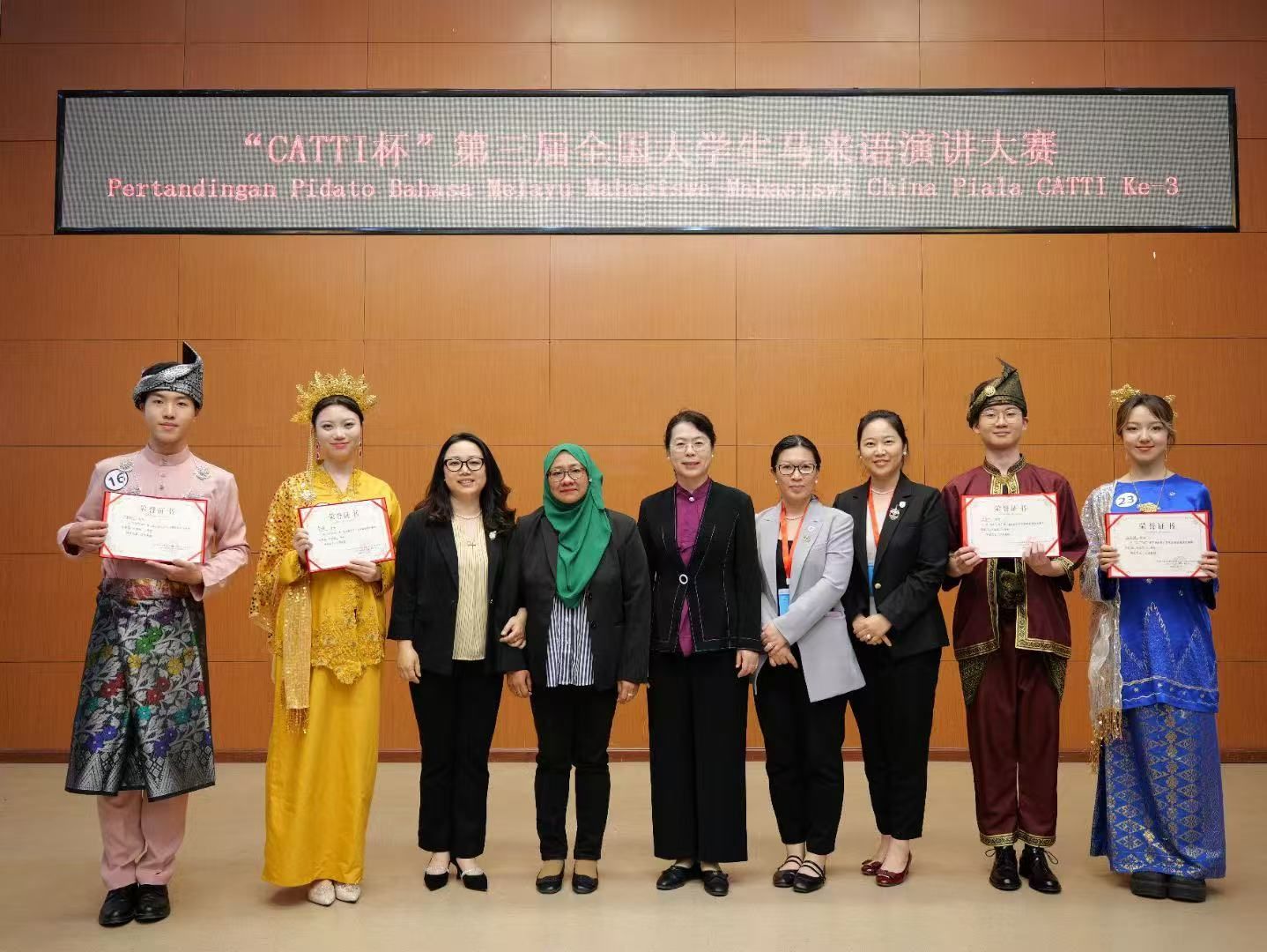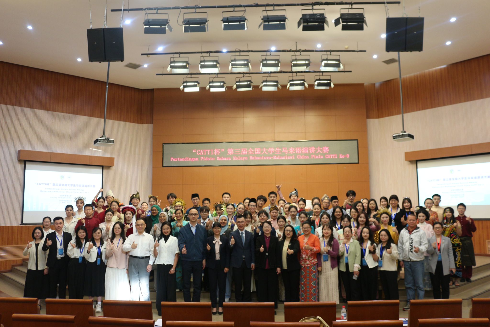 2025年5月23日,“CATTI 杯”第三届全国大学生马来语演讲大赛在beat365唯一官方网站成功举办。大赛由全国大学生马来语演讲大赛组委会主办,beat365唯一官方网站承办,beat365唯一官方网站、中国马来研究中心及中国外文局全国翻译专业资格(水平)考试项目管理中心协办,旨在促进全国高校马来语专业学生之间的交流与合作,提升学生的马来语口语表达和演讲能力。