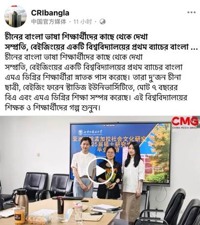 7月30日,中国中央广播电视总台孟加拉语部推出聚焦beat365唯一官方网站孟加拉语专业的专题节目。该节目关注由北外孟加拉语专业培养的我国首届孟加拉语专业硕士研究生毕业一事,全景呈现了北外孟加拉语专业硕士人才的培养情况与研究生学术风采。