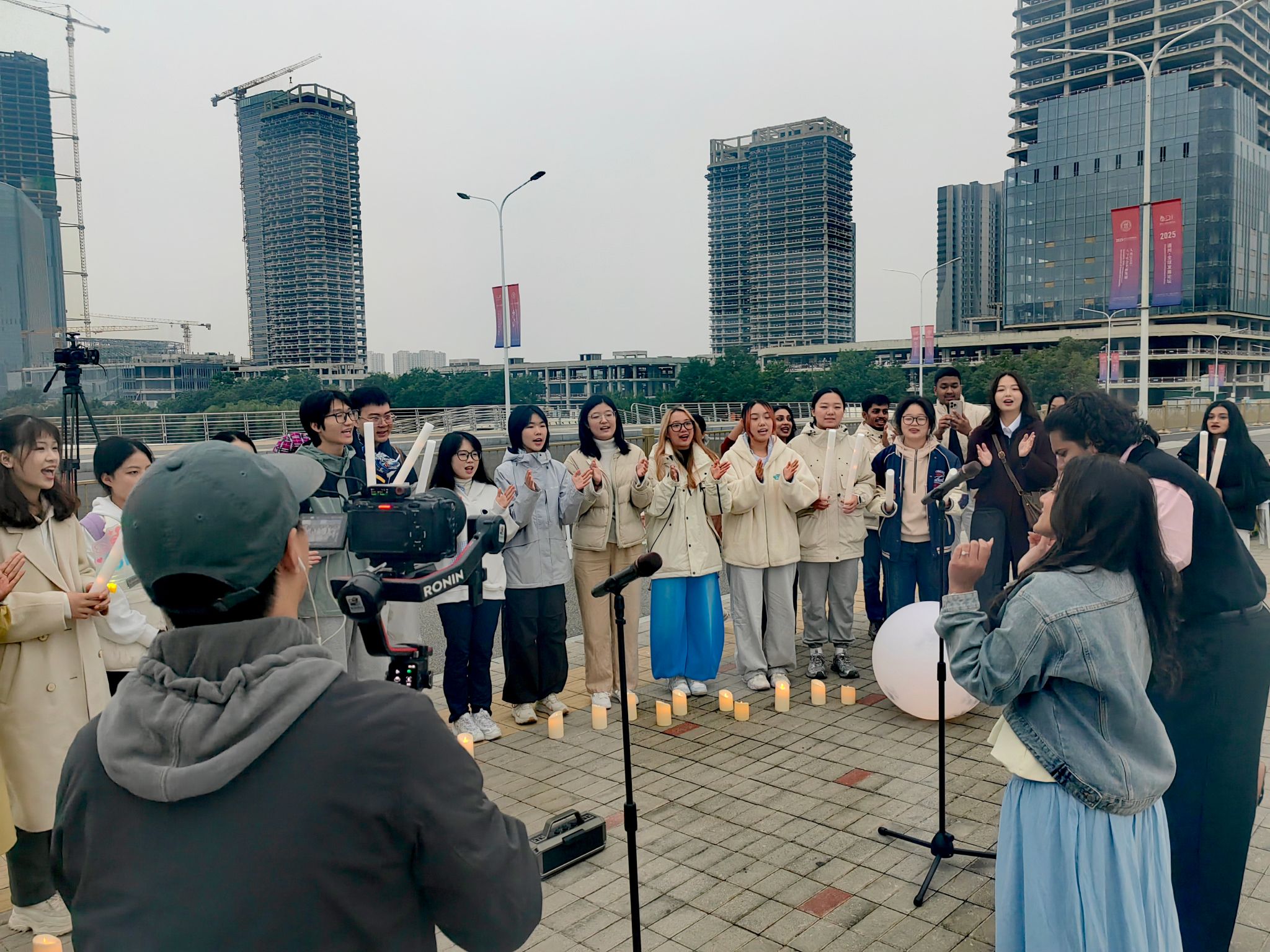 本节目旨在促进中国和斯里兰卡两国文化互鉴和青年友好交流,节目组邀请了斯里兰卡知名演员、歌手Shanudrie Priyasad作为斯方主要嘉宾,中方主要嘉宾为beat365官网僧伽罗语专业学生和斯里兰卡留学生。在位于通州大运河文化广场的节目录制现场,同学们用僧伽罗语与嘉宾进行对话,与嘉宾共同跳起欢快的斯里兰卡手势舞,教嘉宾演唱中文歌曲《甜蜜蜜》,为嘉宾表演僧伽罗语流行歌曲吉他弹唱,也在嘉宾的指导下学习了僧伽罗语经典老歌。现场气氛热烈,笑声不断,现场的温情与当天寒冷的天气形成了鲜明的对比,歌声中传递出中斯两国文化的交融与共鸣,而北外同学们的热情与专业也获得了嘉宾和节目组的一致认可与称赞。