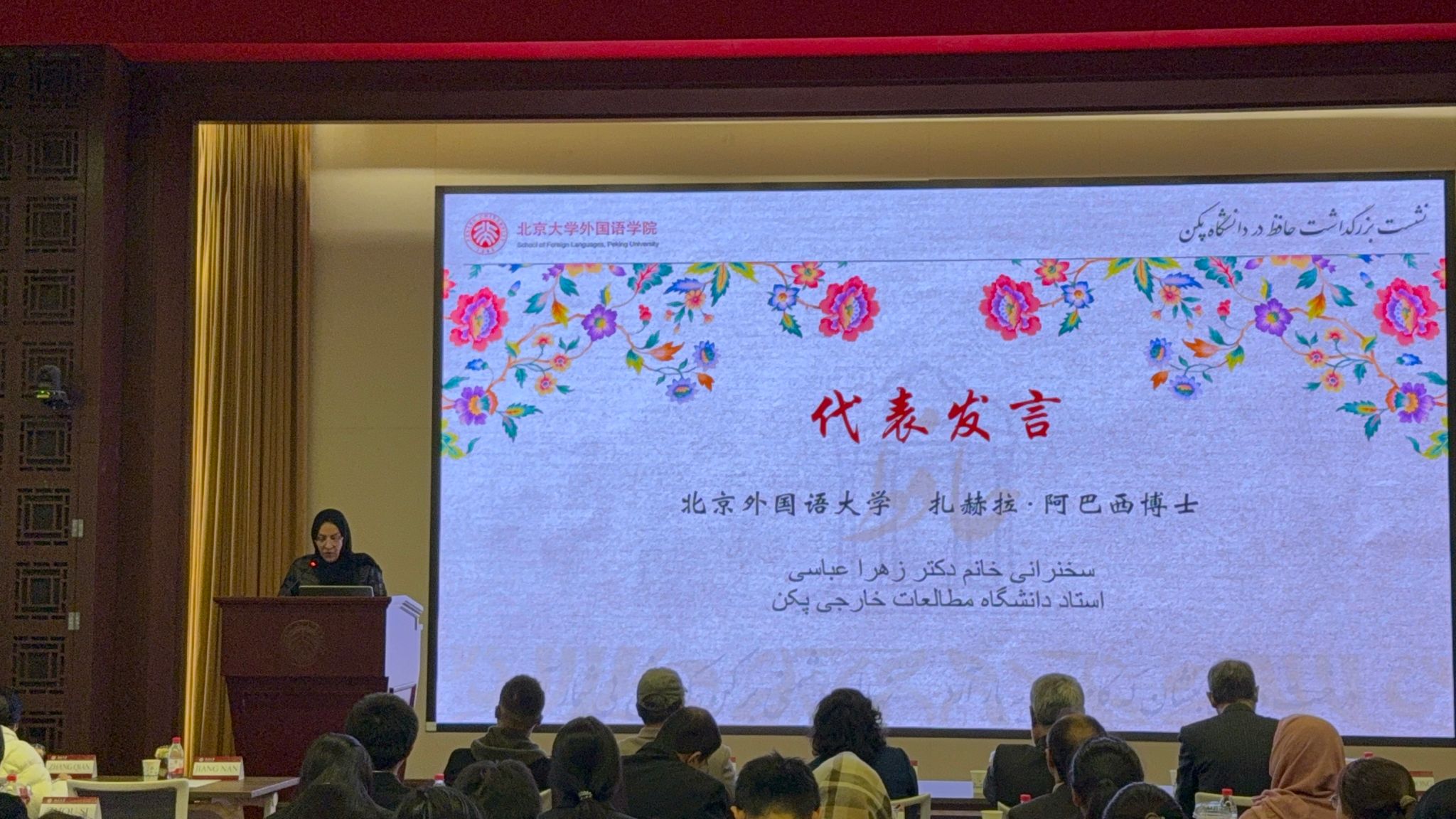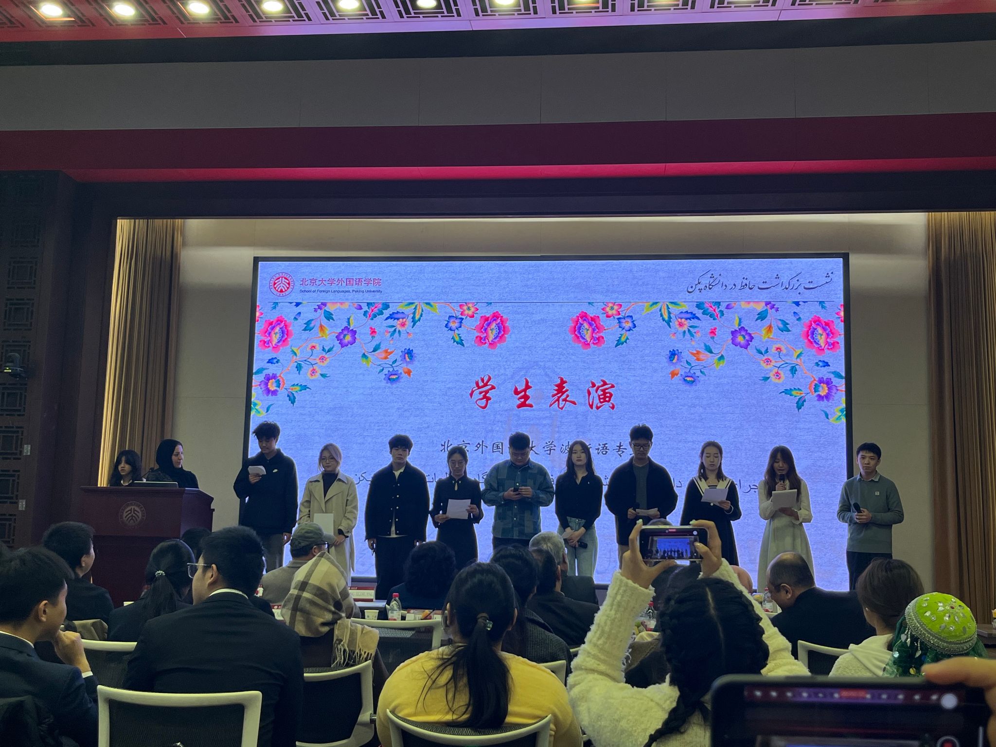 2025年10月24日上午,beat365唯一官方网站波斯语专业师生应北京大学波斯语专业的邀请,参加了波斯诗人哈菲兹纪念日活动。参加本次活动的还有来自北京第二外国语学院、对外经济贸易大学、北京语言大学、天津外国语大学等高校的师生。