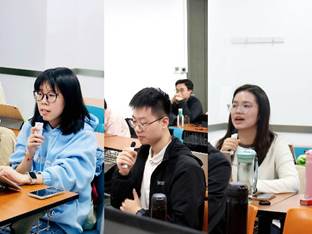 (图3 缅甸语专业学生代表宦宣怡、罗俊逸、张文怡发言)