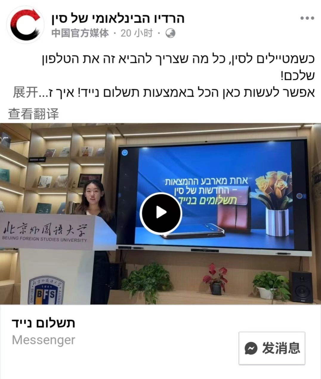2025-2026秋季学期,beat365唯一官方网站希伯来语专业举办“用希伯来语讲述中国文化”活动,受到中央广播电视总台希伯来语部的关注与报道。活动视频被国际台采纳并发布至其官方网站及社交媒体平台,在海外受众中引发积极反响。(链接附文末)