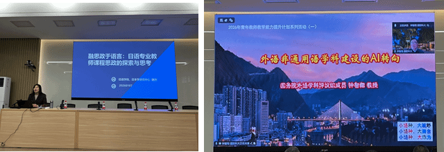 为了更好地帮助学院老师精进教学能力,学院特邀日语学院魏然副教授带来“融思政于语言:日语专业教师课程思政的探索与思考”讲座,聚焦语言教学中思政元素的有机融入路径。之后,学院邀请到国防科技大学钟智翔教授以“外语非通用语学科建设的AI转向”为题,探讨 AI 技术赋能非通用语学科创新发展的核心方向。